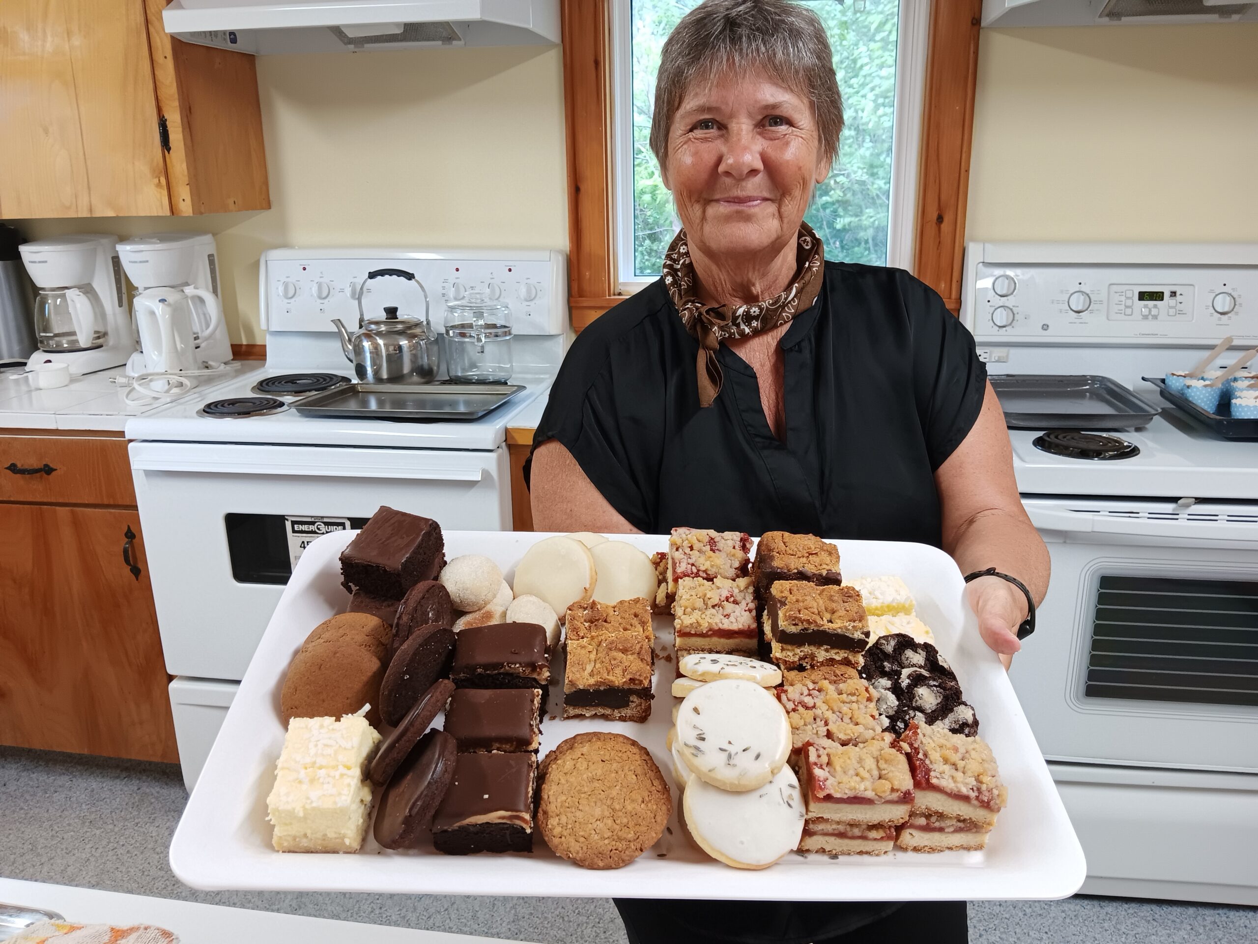 Marian Kormos restocking the treat table at the Dugua Art Exhibit Opening Ceremony – June 2024